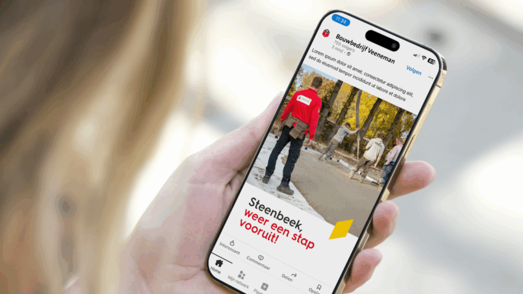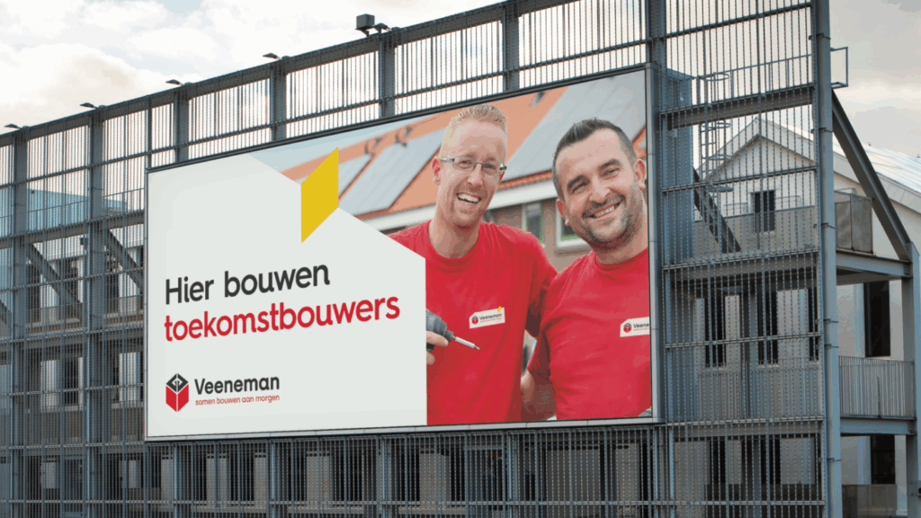 De beeldstijl van Veeneman combineert realistische fotografie, gerichte AI-beelden en functionele illustraties. Samen creëren ze een moderne, technische en professionele uitstraling die past bij het bouwkarakter van het bedrijf. Heldere keuzes in beeldgebruik versterken verhalen, projecten en boodschappen op een consistente manier.